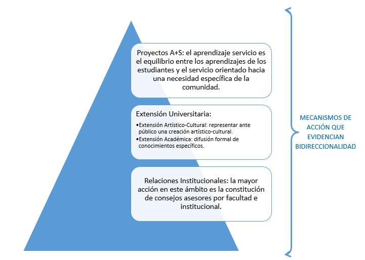 Son todas las iniciativas mediante las cuales se retroalimenta la función de vinculación con el medio a nivel institucional, están conformadas por actividades que tradicionalmente se han reconocido como formas de relacionarse con el entorno y por aquellas que evidencian de manera efectiva la bidireccionalidad y el doble impacto.